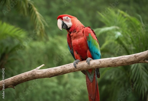 © orelphoto, Fototapeta premium Red and green macaw parrot on a branch