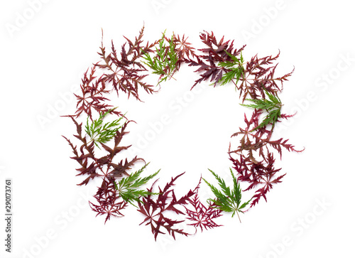 © junej, Naklejka premium Red and Green Maple Leaves Wreath
