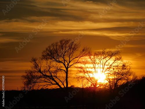 Obraz premium red and orange sunset with tree silhouette