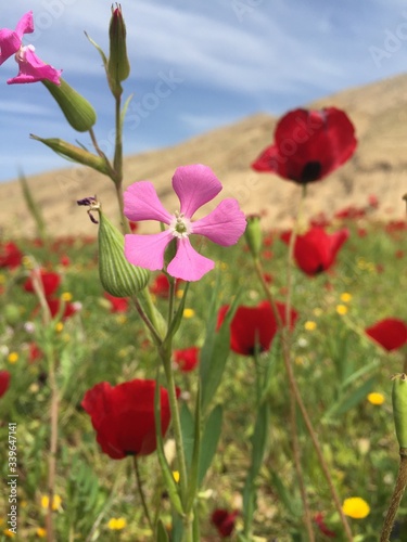 © yousof, Fototapeta premium red and pink flowers in the grass