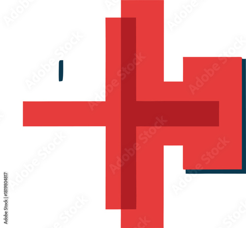 © Orpita, Obraz premium Red and white crosses overlapping on a blue background, abstract design