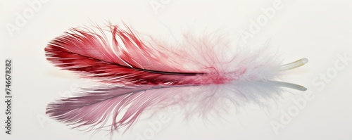 Obraz premium Red and White Feather Resting on White Surface