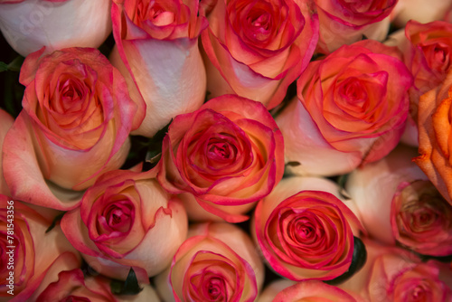 © The Lumenist, Fototapeta premium Red and white garden roses symbolizing love, passion and valentine's day