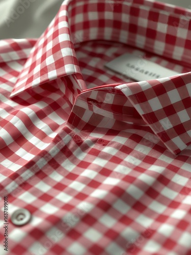 © Aloha Clicks, Fototapeta premium Red and White Gingham Pattern Button Down Shirt Close Up