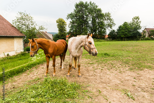 Obraz premium Red and white horses