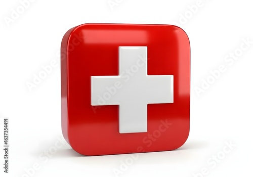 Fototapeta premium Red and White Medical Cross Button Symbol