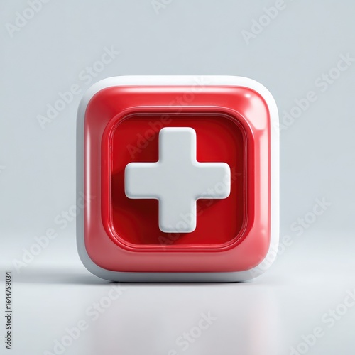 © Abdu, Obraz premium Red and white square icon; a bold plus sign