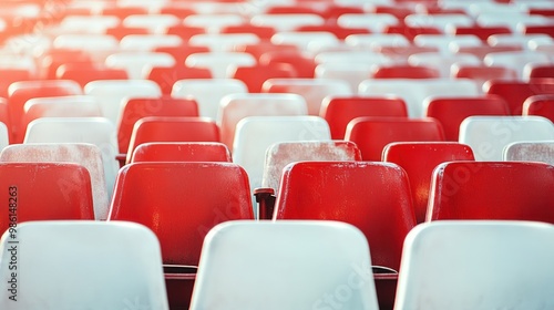 © B 7 YOU, Obraz premium Red and white stadium seats in a pattern.