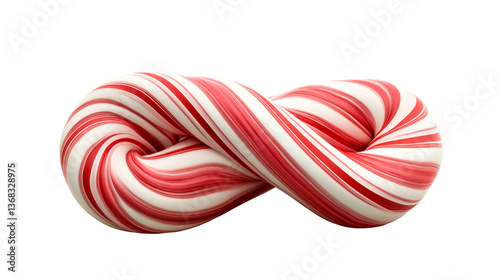 Fototapeta premium Red and white striped candy cane in infinity shape, cut out transparent