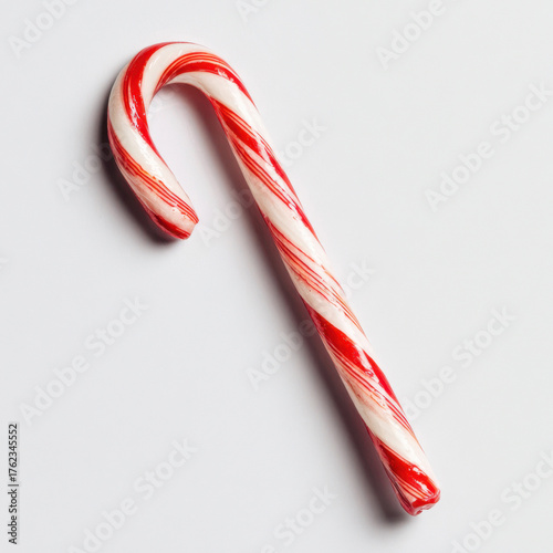 © Julia Jones, Fototapeta premium Red and white striped candy cane on white background