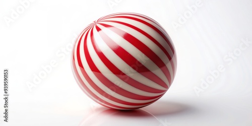 Fototapeta premium Red and White Striped Sphere on White Background, sphere , red , white , stripes