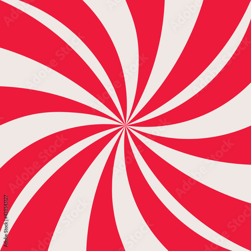 Fototapeta premium Red and white striped swirl background, flat design, vector illustration,...