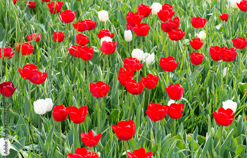 © max dallocco, Fototapeta premium Red and white tulips - Tulipani rossi e bianchi