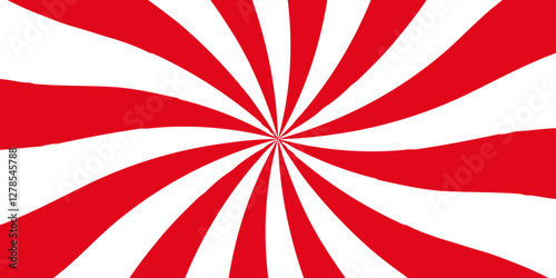 Fototapeta premium Red and white twisted swirl. Spiral radial striped backdrop design. Sunburst...
