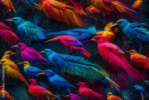 © Hafsa iqbal, Obraz premium red and yellow feather birds