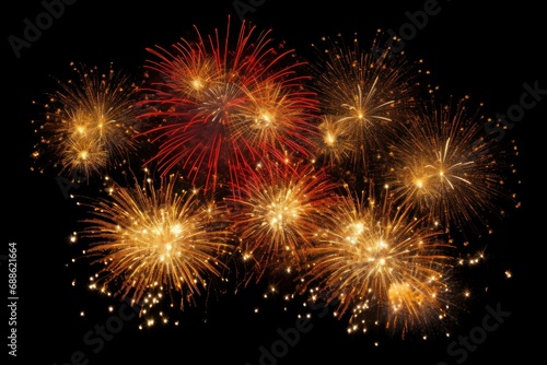 © listari, Fototapeta premium Red and yellow firework isolated on black background