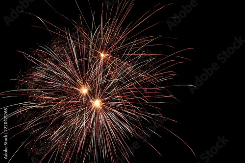 Fototapeta premium red and yellow fireworks isolated against dark sky