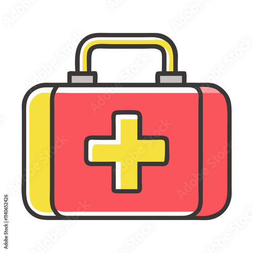 Fototapeta premium Red and yellow first aid kit with a handle.