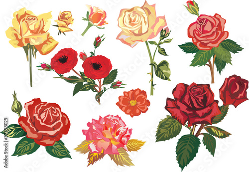 © Alexander Potapov, Fototapeta premium red and yellow rose branches