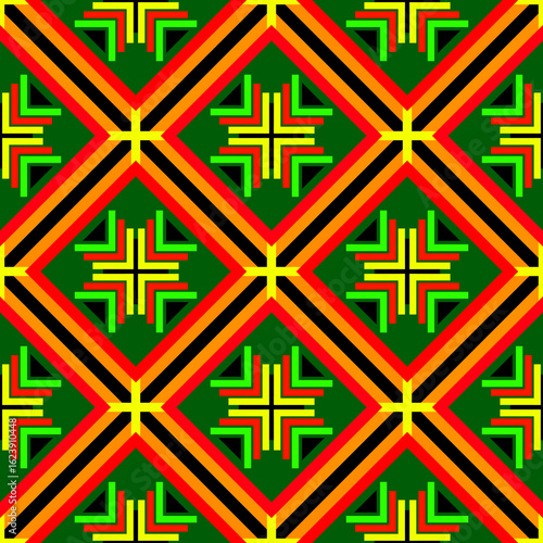 © PHONG, Obraz premium Red and yellow seamless cross pattern with medical and symbolic design elements
