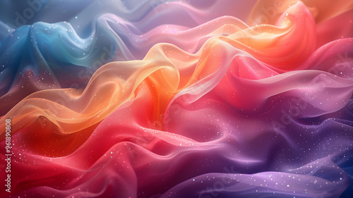 © Mariia, Obraz premium red and yellow silk. Abstract pink background. Light pink abstract template for card or banner. Abstract vibrant background. Nice waves. Wave. Dynamic Flowing background
