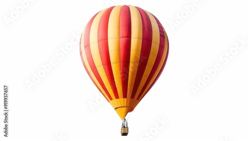 © luck, Fototapeta premium Red and Yellow Striped Hot Air Balloon Against White Background