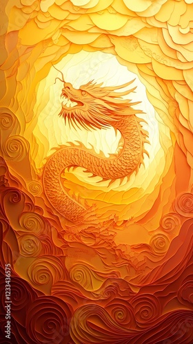 Obraz premium Red and yellow traditional style architectural paper cut poster background