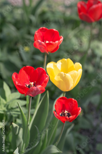 Obraz premium red and yellow tulips