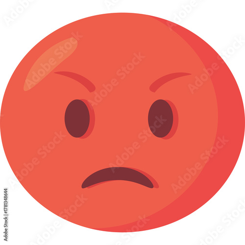 © rasya, Fototapeta premium Red Angry Face Emoji Expressing Frustration And Displeasure With Furrowed Brow And Tense Mouth On White Background With Transparent Background
