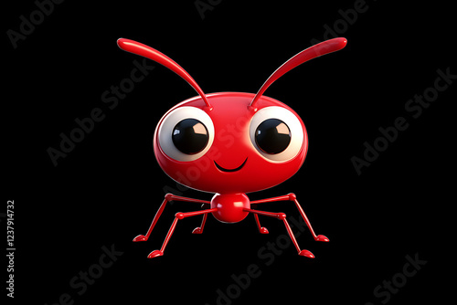 Fototapeta premium red ant on a black background, red ant on a blank black background, a red ant, red ant, cute red ant, black background, copy space for add text, 3d rendering, 3d, vector, AI generative