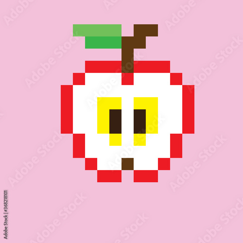 © Sudakarn, Fototapeta premium Red apple with a pixel art style. Vector pixel art apple. Apple Dissection. Pink background.