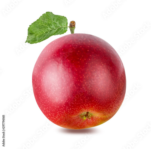 © Alexander, Fototapeta premium Red apple with leaf isolated on white background with clipping path