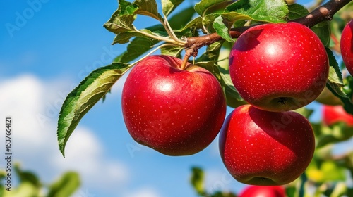 © wikkie, Obraz premium Red apples hanging from tree branches