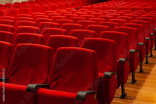 © Stefano Pessina, Fototapeta premium Red armchairs of a empty cinema