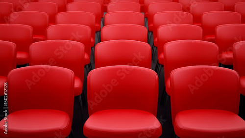 Fototapeta premium Red auditorium chairs arranged in neat rows create vibrant and inviting atmosphere