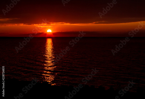 © Елизавета Мяловская, Naklejka premium Red autumn sunset on the sea