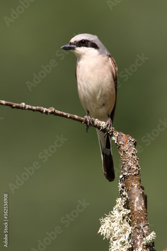 © Jesus, Fototapeta premium Red-backed shrike adult male in their breeding territory at first light of day