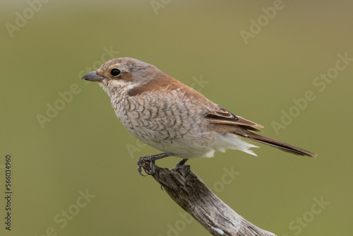 Fototapeta premium Red-backed shrike - Lanius collurio perched with green background. Photo from...