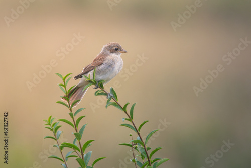 Fototapeta premium Red-Backed Shrike Perched on Branch in Natural Habitat