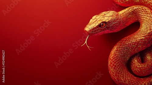 Fototapeta premium red background, golden paper cut snake illustration at the side, glittery...