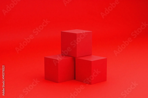 © Mingqing, Obraz premium red background with three red cubes on it