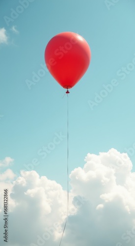 © Roman, Fototapeta premium Red balloon being pulled by a string in the sky