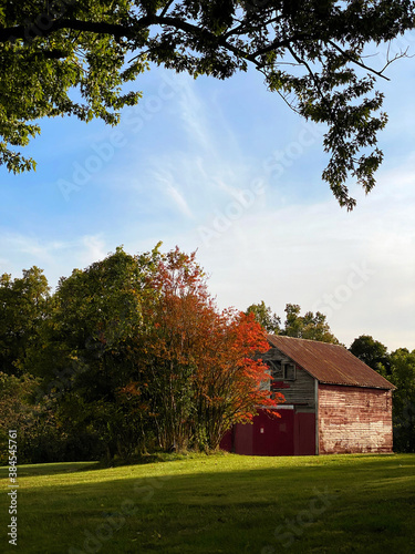 © Lynn, Obraz premium Red barn in autumn, October 2020