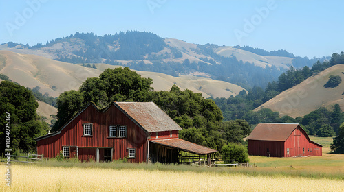 © Fatoniyah, Obraz premium red barn in the mountains