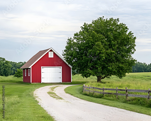 © ARIS, Obraz premium Red barn with white trim on a country road