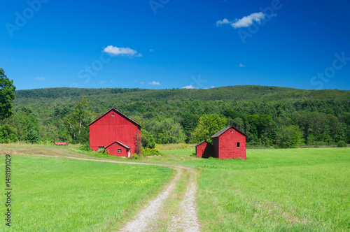 © Dan, Obraz premium red barns on a new england farm in massachusetts