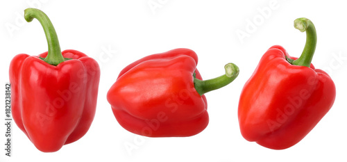 © natthapol, Obraz premium Red Bell Pepper (Sweet Red Pepper) isolated, transparent PNG, PNG format, Collection, set