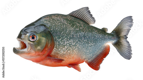 © bagus_, Fototapeta premium Red Bellied Piranha Closeup On Transparent Background