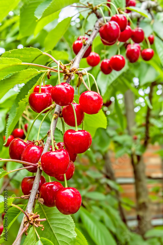© HaiGala, Obraz premium Red berries of a sweet cherry on a branch