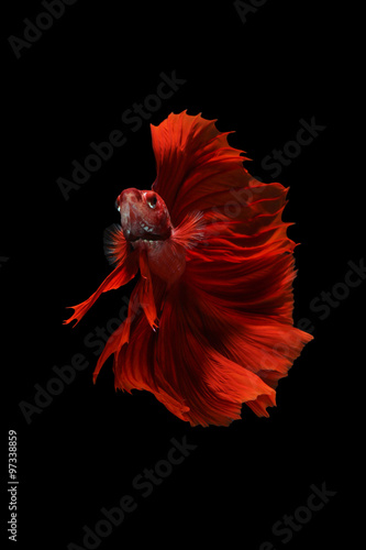 © note_yn, Obraz premium Red betta fish on black background. ( Double tail )